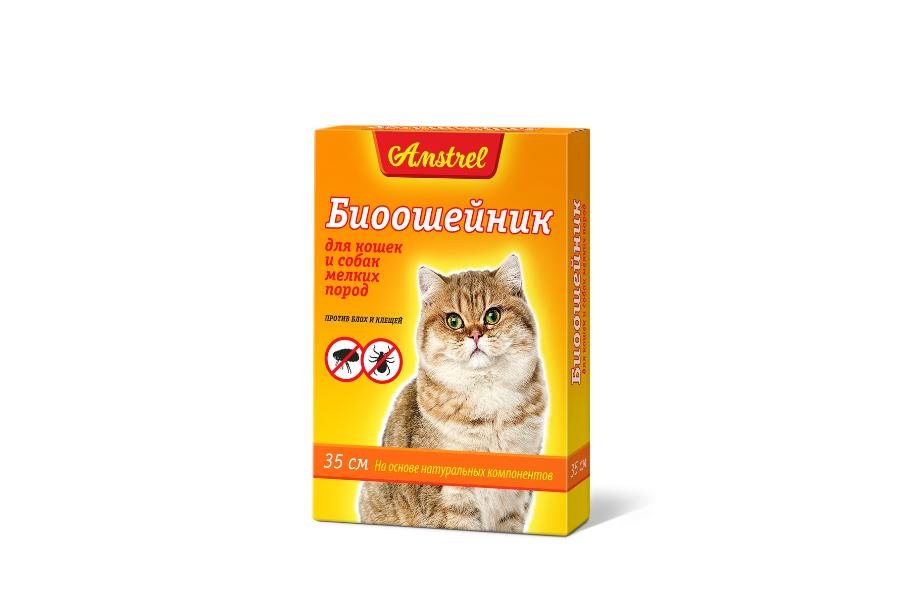 BIOსაყელო რწყილებისა და ტკიპების საწინააღმდეგოდ “Amstrel” კატებისათვის. ფერი: ნარინჯისფერი. სიგრძე: 35 სმ. შექმნილია რწყილების, ტკიპებისა და სხვა ექტოპარაზიტებისგან დასაცავად.