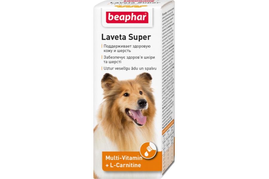 Laveta Super საკვები დანამატი ძაღლის ბეწვისს მდგომარეობის გასაუმჯობესებლად.