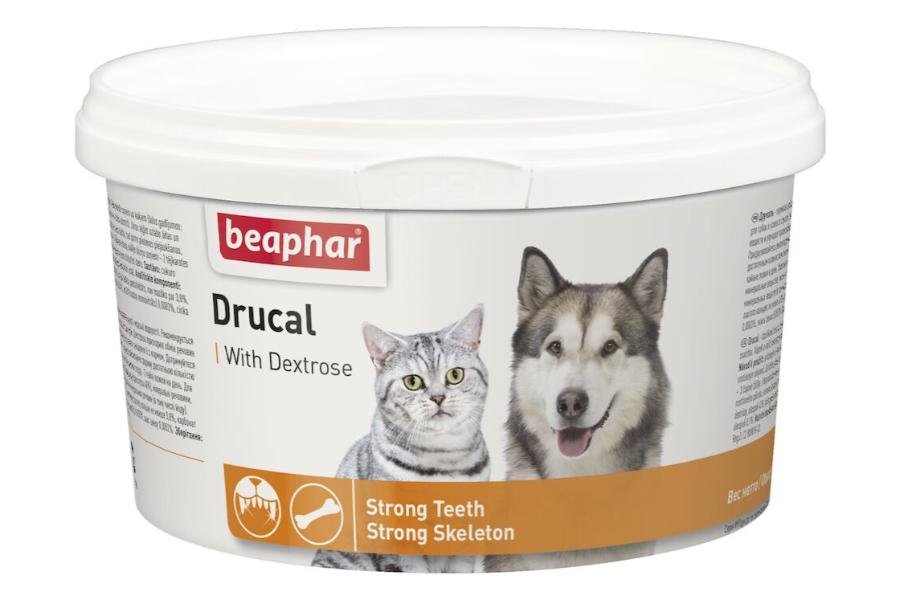 Beaphar Drucal დრუკალი ძაღლებისთვის, კატებისთვის და პატარა ცხოველებისთვის, არის მაღალი ხარისხის მინერალების ნაზავი, რომელსაც ემატება ენერგიით გამდიდრებული ყურძნის შაქარი, ჯანსაღი მცენარეული ინგრედიენტები და ვიტამინებით გამდიდრებული წყალმცენარეები. კალციუმი და მინერალები საჭიროა ელასტიური კუნთების, მტკიცე კიდურების და ძლიერი კბილებისთვის.