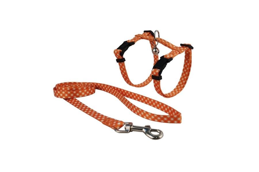 კატის აღკაზმულობა საბელით, შოტლანდიური – ნარინჯისფერი M / Cat harness with leash plaid orange Medium 25-40სმx35-55სმ