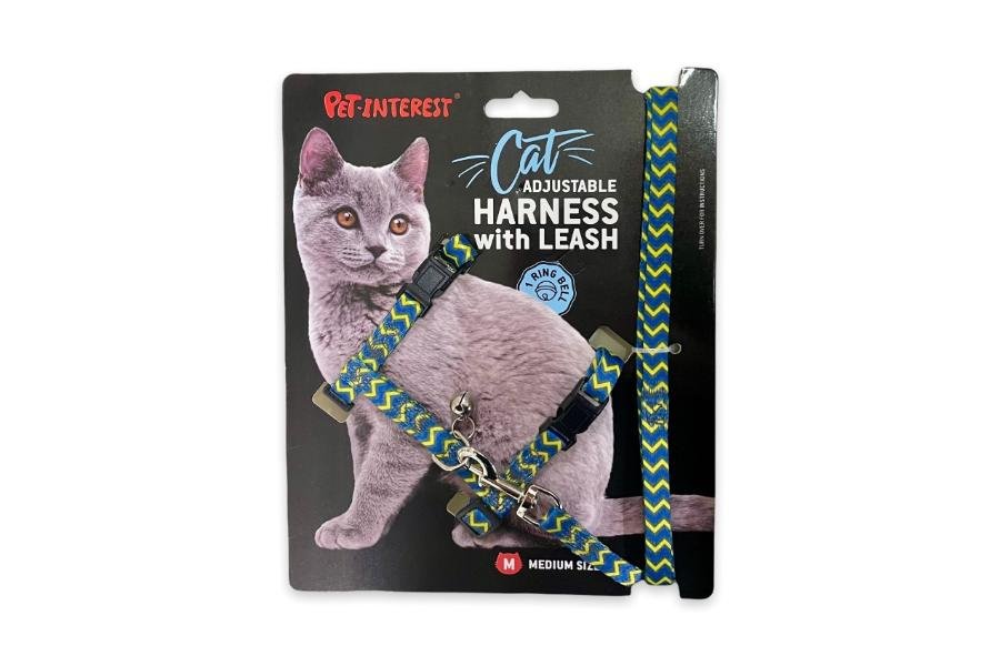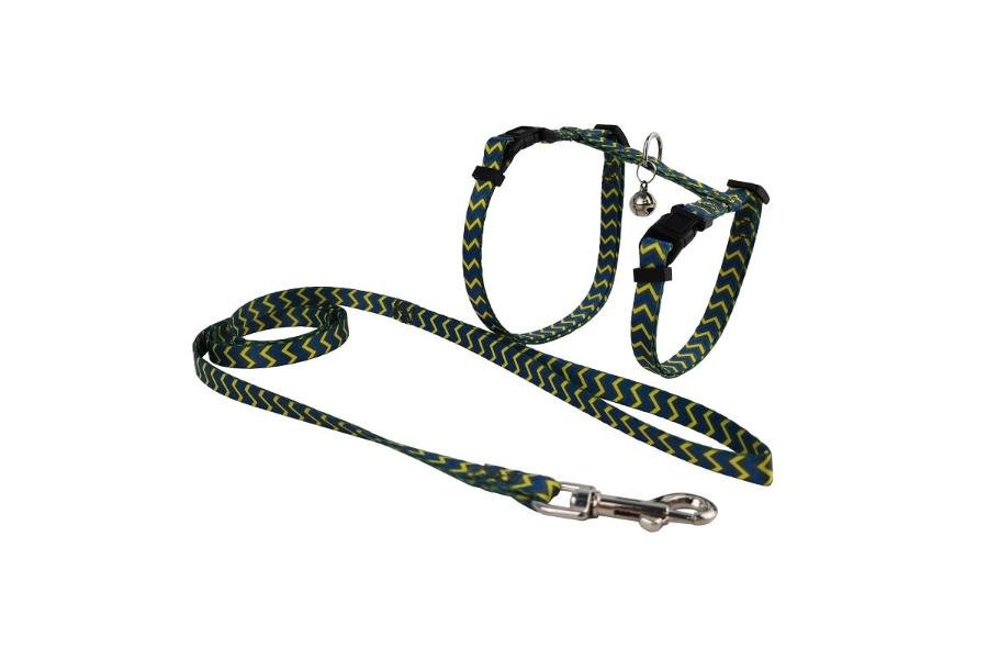 რეგულირებადი კატის აღკაზმულობა და საბელი.