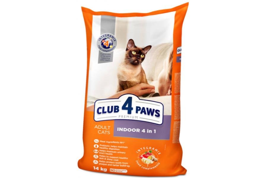 მშრალი საკვრბი შეიცავს „4 1-ში“ ფორმულას სახლში მცხოვრები ზრდასრული კატებისთვის: