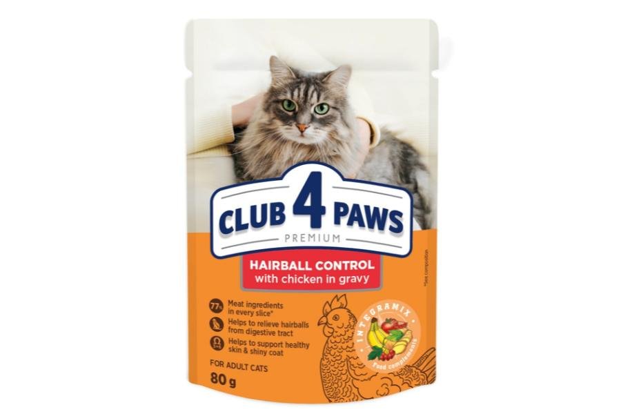 კლუბი 4 თათი კატის ჟელე ქათმის ხორცით Hairball control 100გრ