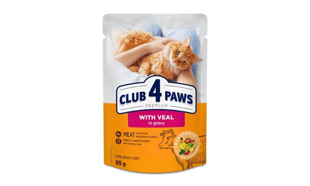 შემადგენლობა:78% ხორცი და ცხოველური წარმოშობის ნაჭრები, მათ შორის ხბოს ხორცის 9%, მარცვლეული, მცენარეული ცილის ექსტრაქტი, მინერალები, ზეთები და ცხიმები (ორაგულის ზეთი 0.22%), ხილი (ბანანი 0.1%, კუნელი 0.03%)*, ბოსტნეული (პომიდორი 0.11%)*, კოჭა* 0.005%.