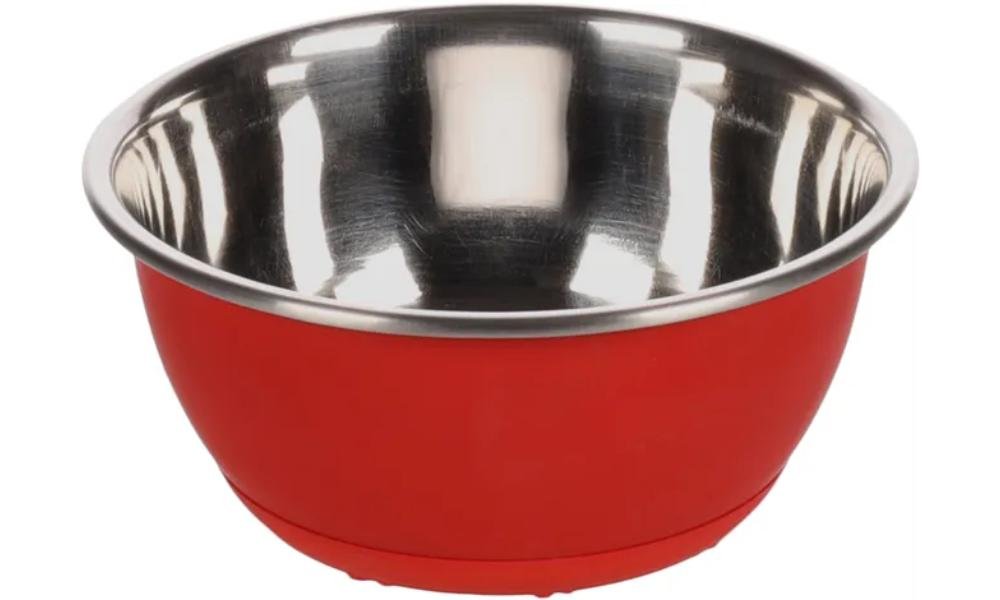 საკვებისა და სასმელის თასი წითელი და ვერცხლისფერი 500მლ / Feeding and drinking bowl Tobias Round Red & Silver 500ml