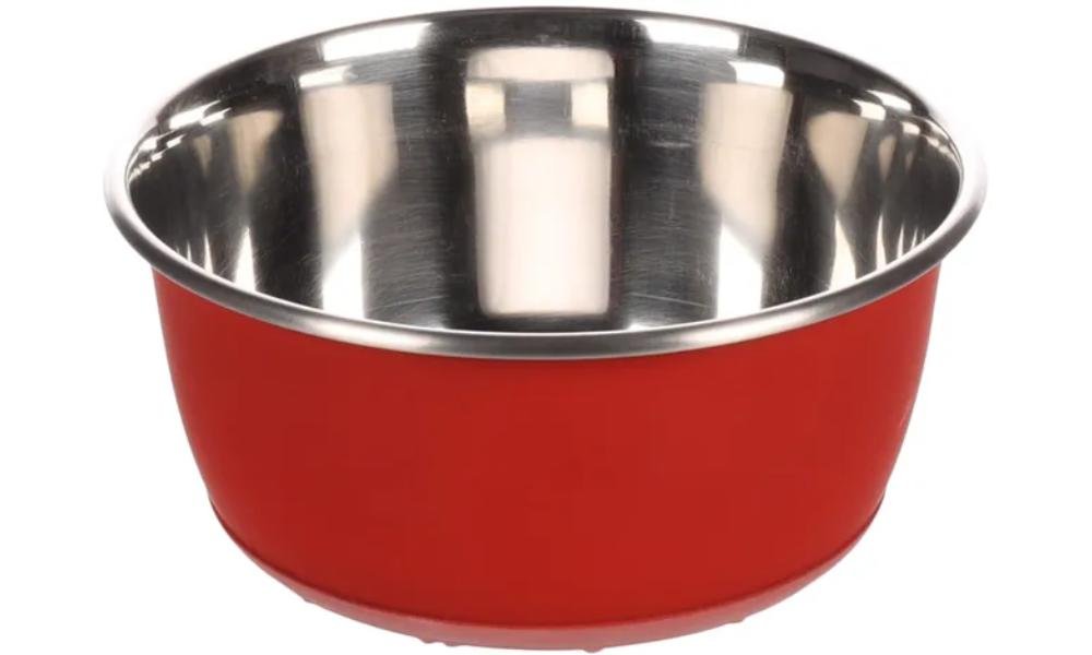 საკვებისა და სასმელის თასი წითელი და ვერცხლისფერი 950 მლ / Feeding and drinking bowl Tobias Round Red & Silver 950ml