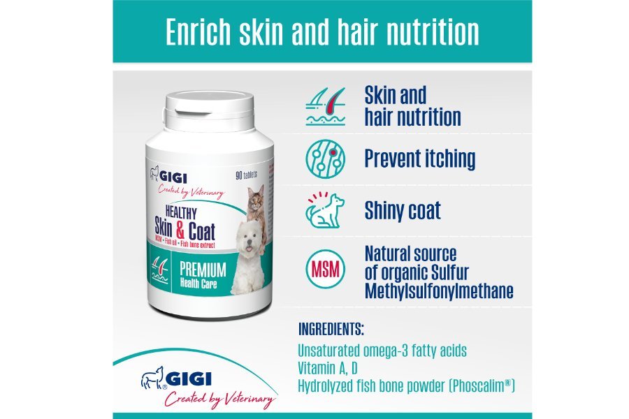 HEALTHY Skin & Coat შეამცირეთ კანის ქავილი და თმის ცვენა. ჯანსაღი კანი და თმა. კატისა და ძაღლის ვიტამინები ჯანსაღი კანისა და მბზინავი ბეწვისთვის.