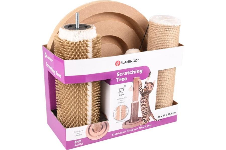 საფხაჭნი კატებისთვის მასაჟორით და ბურთებით – კრემისფერი 29x29x53,5სმ / Scratching tree ayla cream 29x29x53,5CM