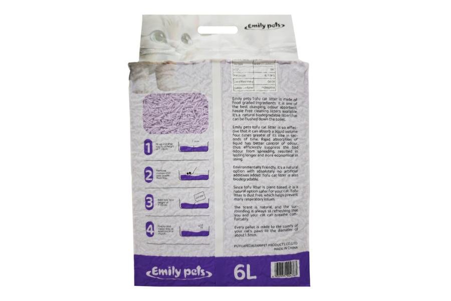 Emily Pets “Tofu”- ს მწვანე ჩაის ქვიშა სოიოსგან მზადდება. გრანულები არ ეკვრის თათებს, ბეწვს და ამავდროულად მაქსიმალურად შთანთქავს ტენიანობას და სუნს. ქვიშას ასევე აქვს ანტისეპტიკური თვისებები რაც საშუალებას გაძლევთ შექმნათ კომფორტული გარემო თქვენი შინაური ცხოველებისთვის.