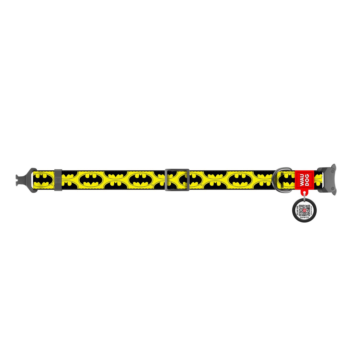 WAUDOG Nylon dog collar with QR passport, “Batman Logo” design, metal fastex, W 25 mm, L 33-49 cm