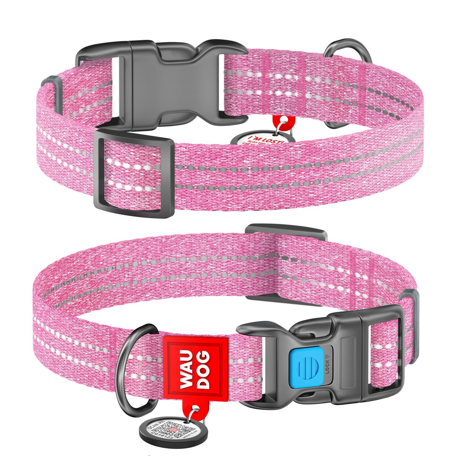 WAUDOG Re-cotton collar with QR passport, reclaimed cotton, plastic buckle (width 15 mm, length 25-35 ?m) pink