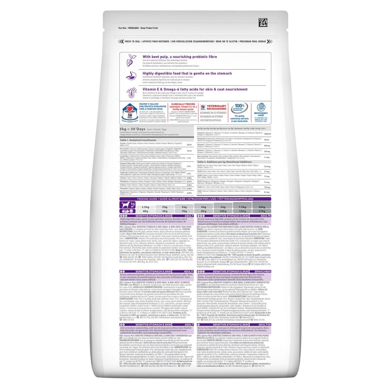 ჰილსი მგრძნობიარე კუჭისა და კანისთვის განკუთვნილი მშრალი საკვები ზრდასრული პატარა და მინი ჯიშის ძაღლებისთვის, ქათმით 6კგ / Hill’s Sensitive Stomach & Skin Adult Small & Mini Breed Dry Dog Food Chicken 6kg