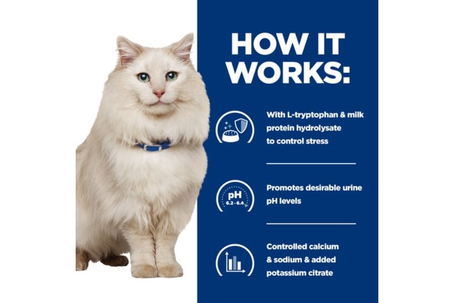 საკვები სტრუვიტის კენჭების რეციდივის შესამცირებლად (კატის ქვედა საშარდე გზების დაავადების გამომწვევი, FLUTD), სტრუვიტის კენჭების დასაშლელად და მოზრდილ კატებში ოქსალატური ქვების წარმოქმნის შესამცირებლად.