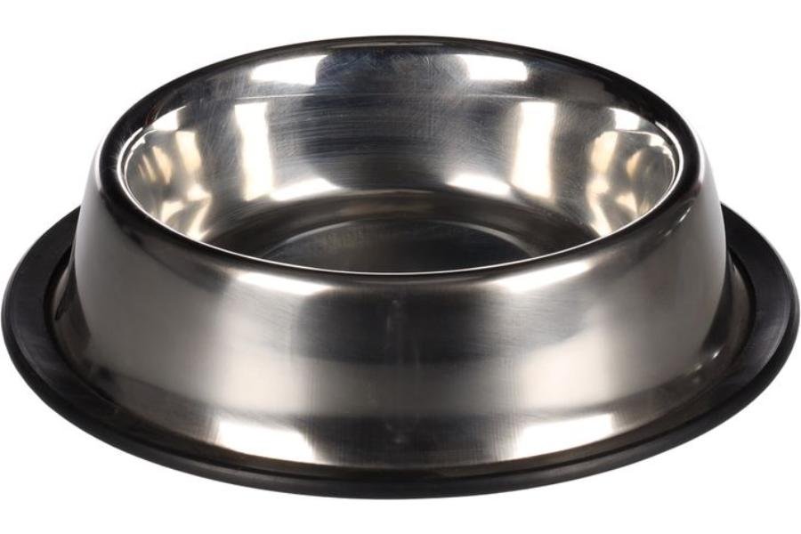 საკვებისა და სასმელის უჟანგავი ლითონის თასი რეზინის ძირით 13სმ 470მლ / Feeding and drinking bowl Thorgan Round Silver 13cm 470ml
