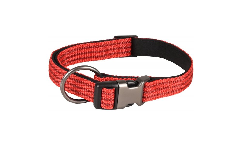 ძაღლის საყელო – წითელი შავი ზოლებით 45-65 სმ 25მმ / Collar Jannu red 45-65cm 25mm