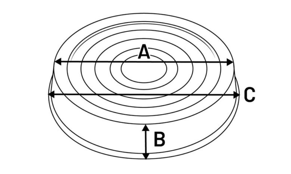 ზომა: A: 15,5 სმ B: 3 სმ C: 17,5 სმ – 200 მლ
