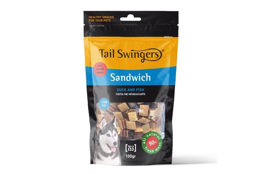 ![11500072[1] საწვრთნელი პატარა სენდვიჩები იხვისა და თევზის ხორცით 100 გრ / Tailswingers Sandwich small bites with duck&fish 100gr - Image 1](https://zoolife.ge/wp-content/uploads/2025/07/115000721.jpg)