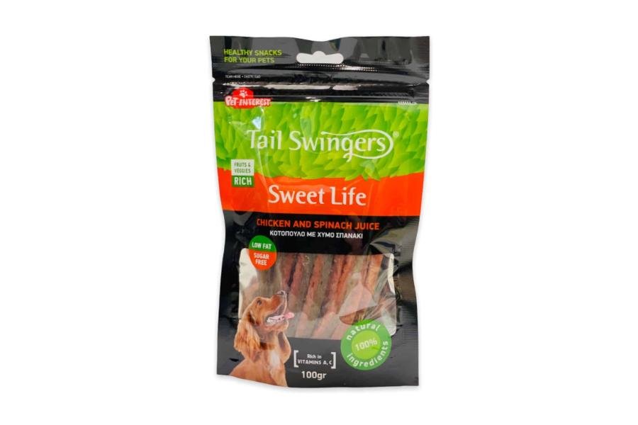 ჩხირები ისპანახი ქათმით 100გრ / Tailswingers stripes spinach with chicken 100 gr